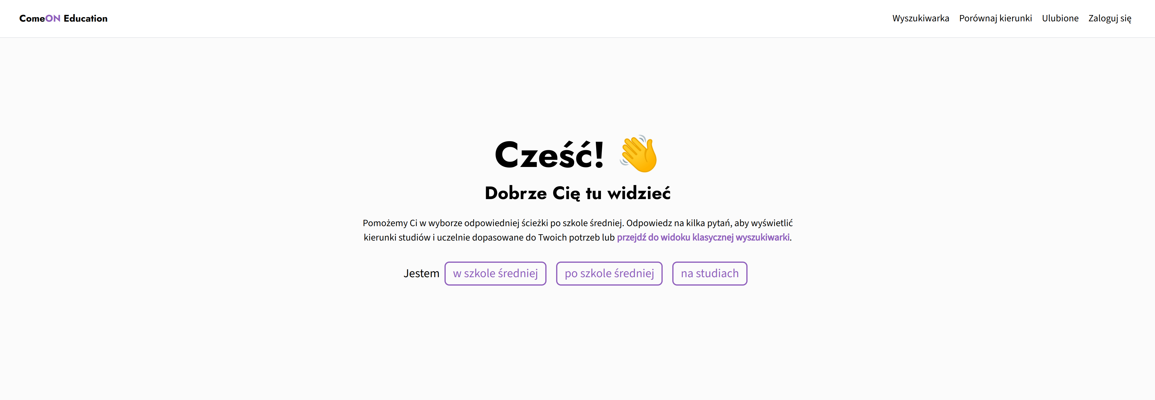 Leveraging the insights and experiences garnered from po8klasie.pl, we introduce ComeON Education - a new, expansive open-source lookup service designed to cater to all educational levels. Our innovative platform goes beyond mere information retrieval; we aspire to be a holistic educational guide, aiding students in identifying and aligning their studies with their intrinsic interests and career aspirations. that sculpt promising educational futures. Together with local governments, schools, students, and parents, we will empower students to make enlightened choices, ensuring their educational pathways are not only academically robust but also personally fulfilling.